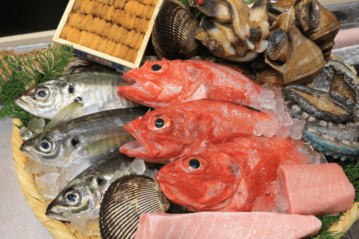 アワビ・赤貝・うに・石垣貝・トリ貝、シャコ、ミル貝、他、10数種類の新鮮魚介類を取り扱っています。
